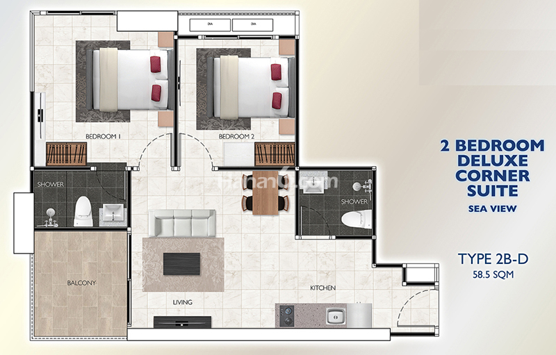 2室2厅58㎡户型